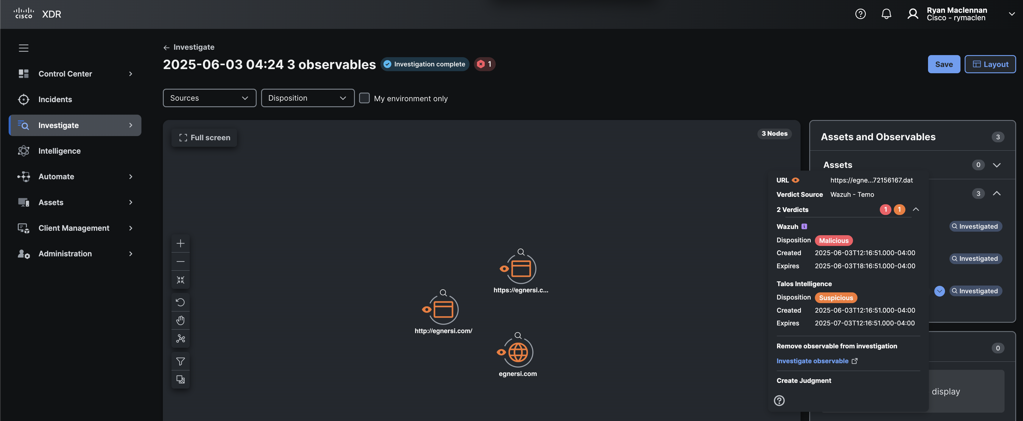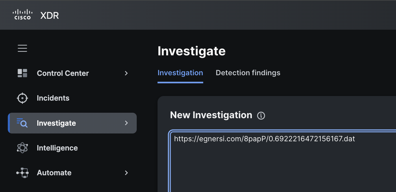 Go to the Investigate page in Cisco XDR and past the below URL into the text box.