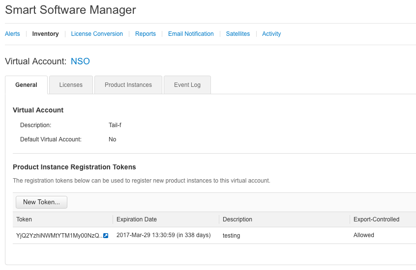 To create a new token, log into CSSM and select the appropriate Virtual Account: