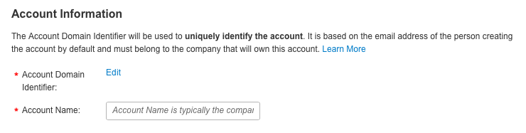 The account request will be pending an approval of the Account Domain Identifier. A subsequent email will be sent to the requester to complete the setup process: