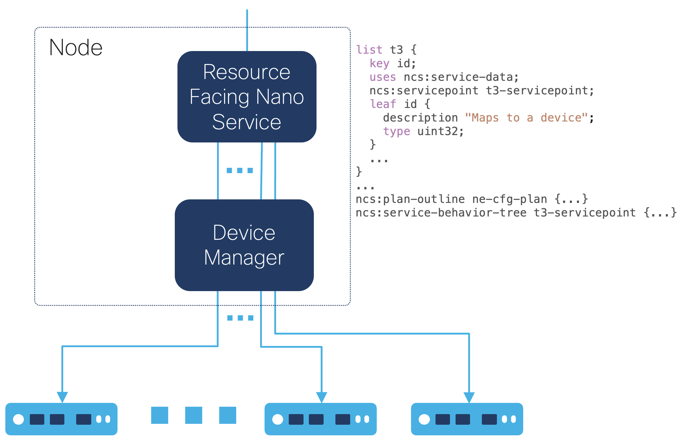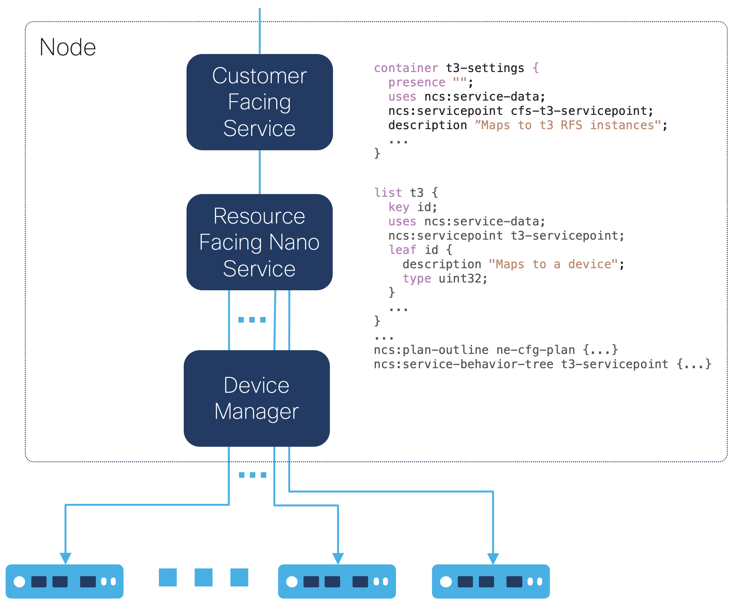 A YANG model describes the input to services, and just like any other data in CDB, it consumes resources. Compared to the typical device configuration, where even small devices often have a few hundred lines of configuration, a small service might only have a handful of configurable inputs. Even extensive services rarely have more than 50 inputs.