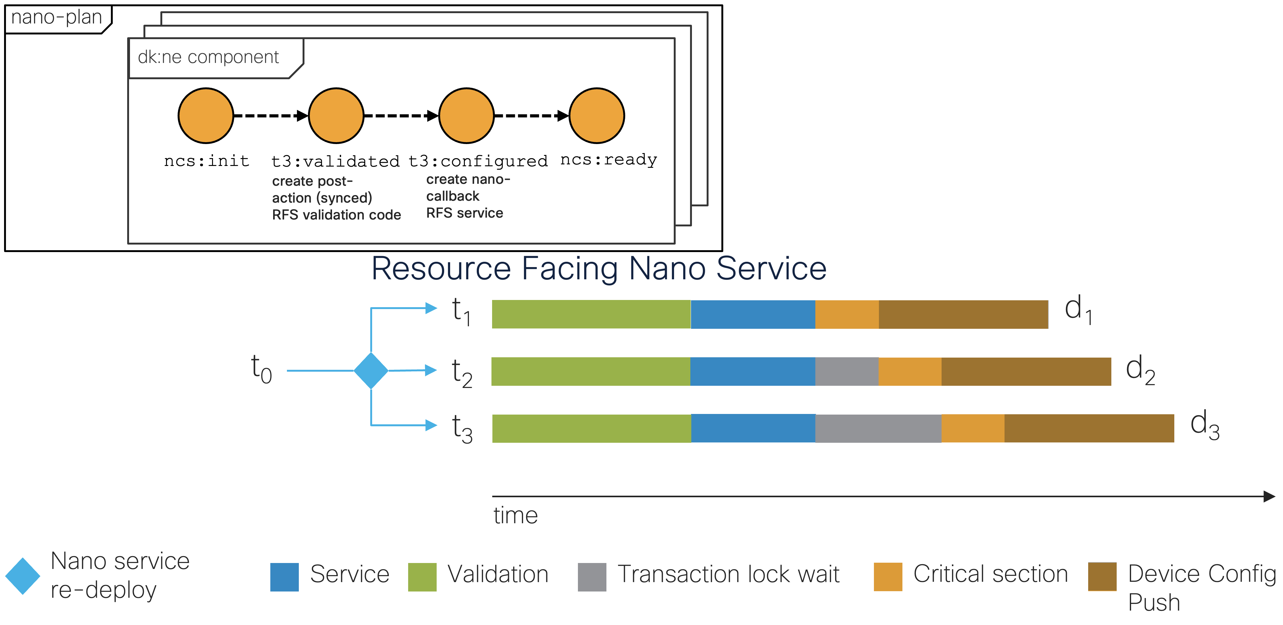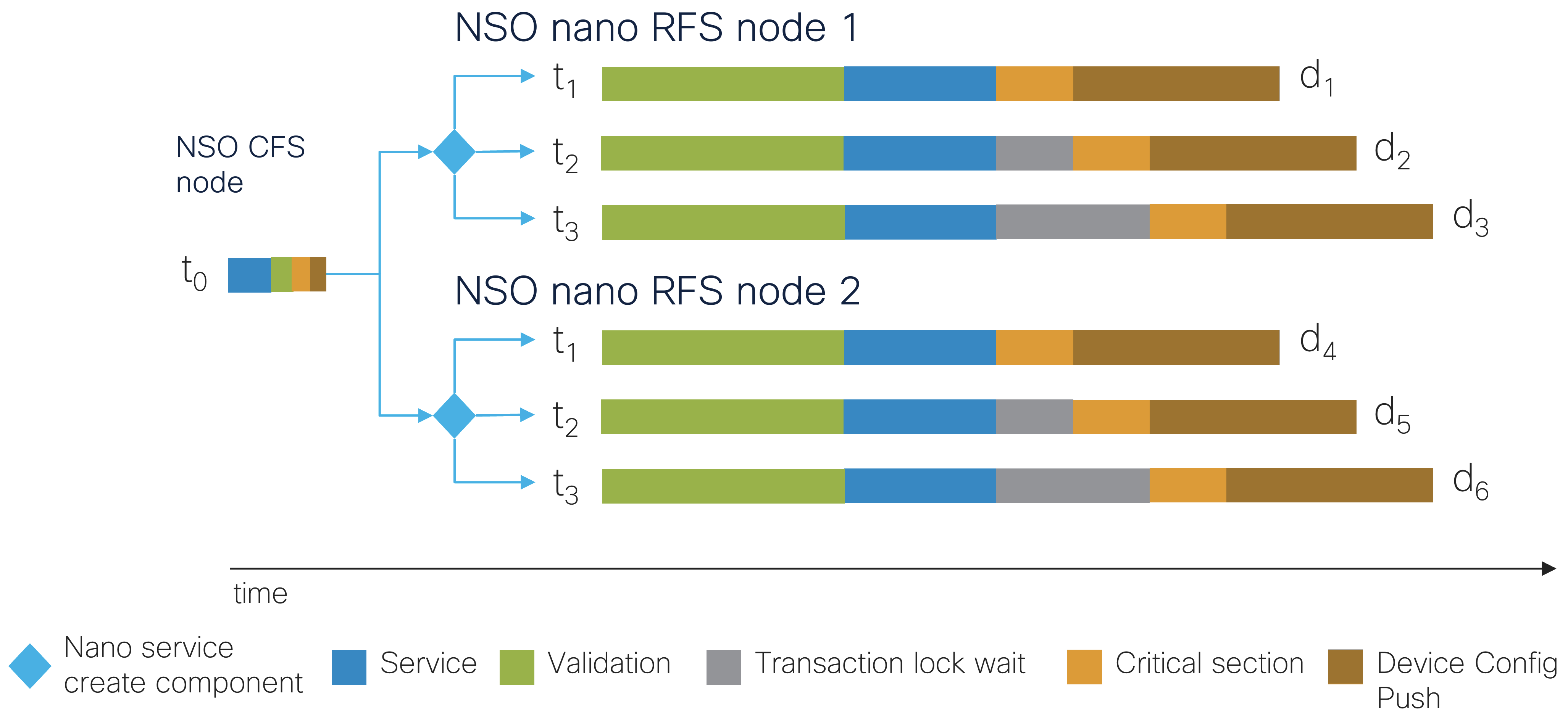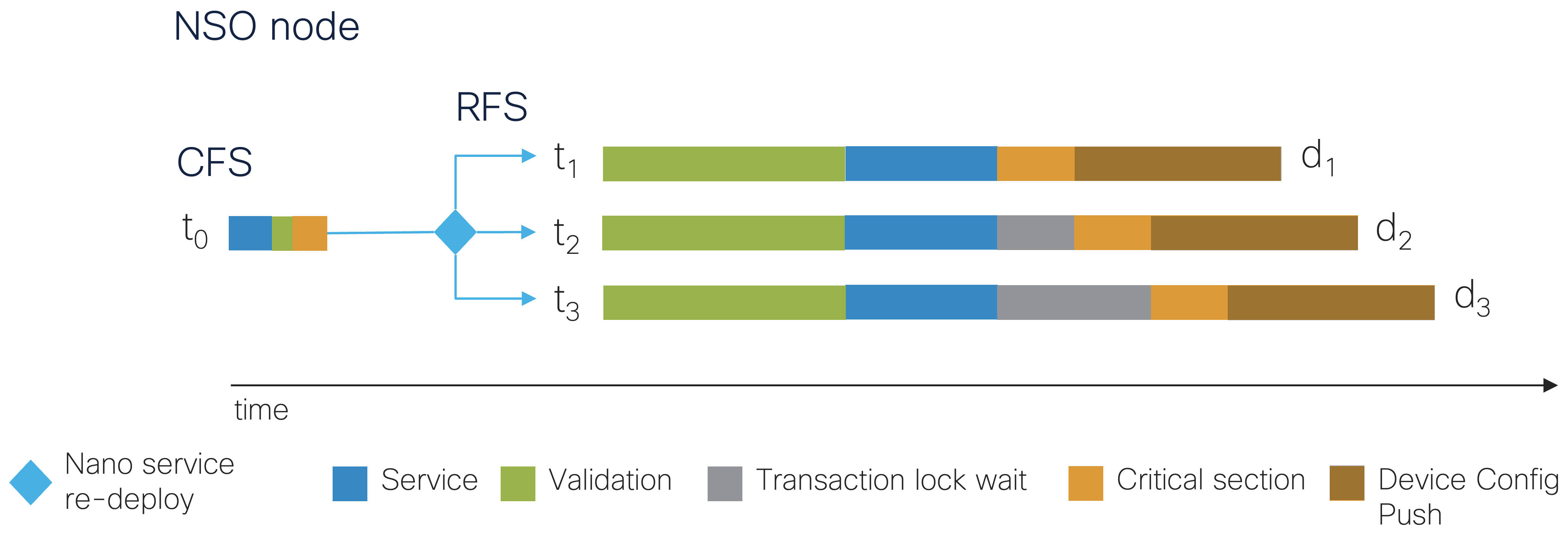 config CFS validate service push config change CLI create Nano config create ndtrans=1 netsim subscriber commit ntrans=2 RFS 1 nwork=1 nwork=1 cq=True device ddelay=1 t -----> t ---> t1 --> 1s -----> 1s -------[----]---> ex0 ---> 1s \ t2 --> 1s -----> 1s -------[----]---> ex1 ---> 1s \ RFS 2 --> t1 --> 1s -----> 1s -------[----]---> ex2 ---> 1s t2 --> 1s -----> 1s -------[----]---> ex3 ---> 1s wall-clock 1s 1s 1s=3s