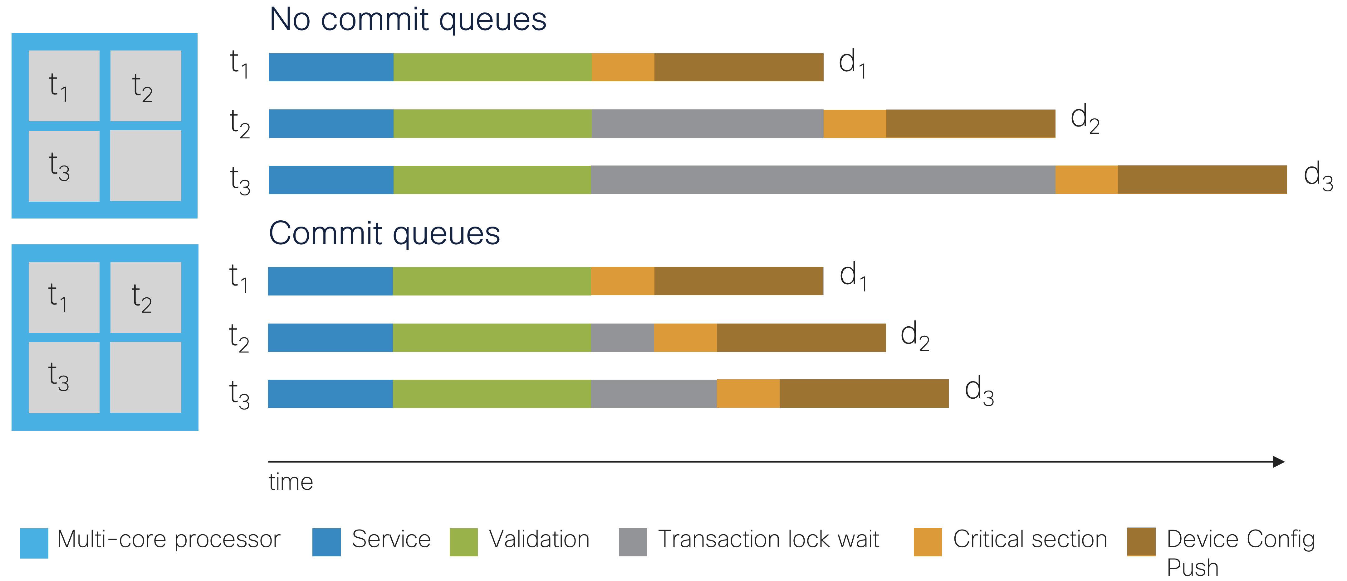 Using commit queues to exclude the time to push configuration changes to devices from inside the transaction lock.