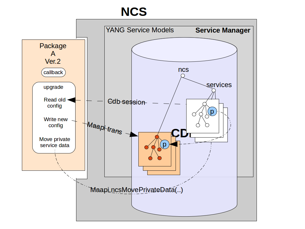 for(int i = 0; i < no; i++) {Via the CdbUpgradeSession, the old service data is