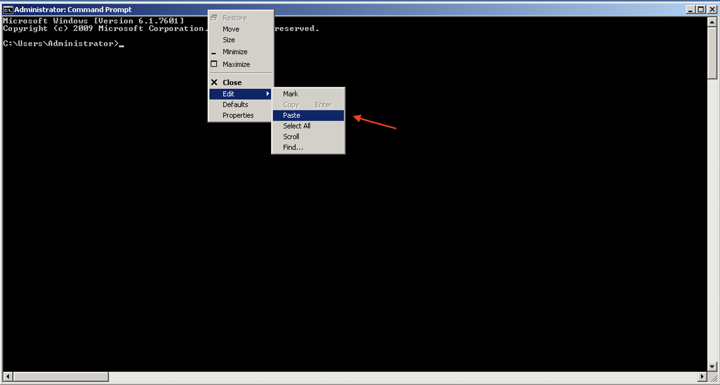 Highlight and copy one of the preceding commands and then paste it into the command prompt.
