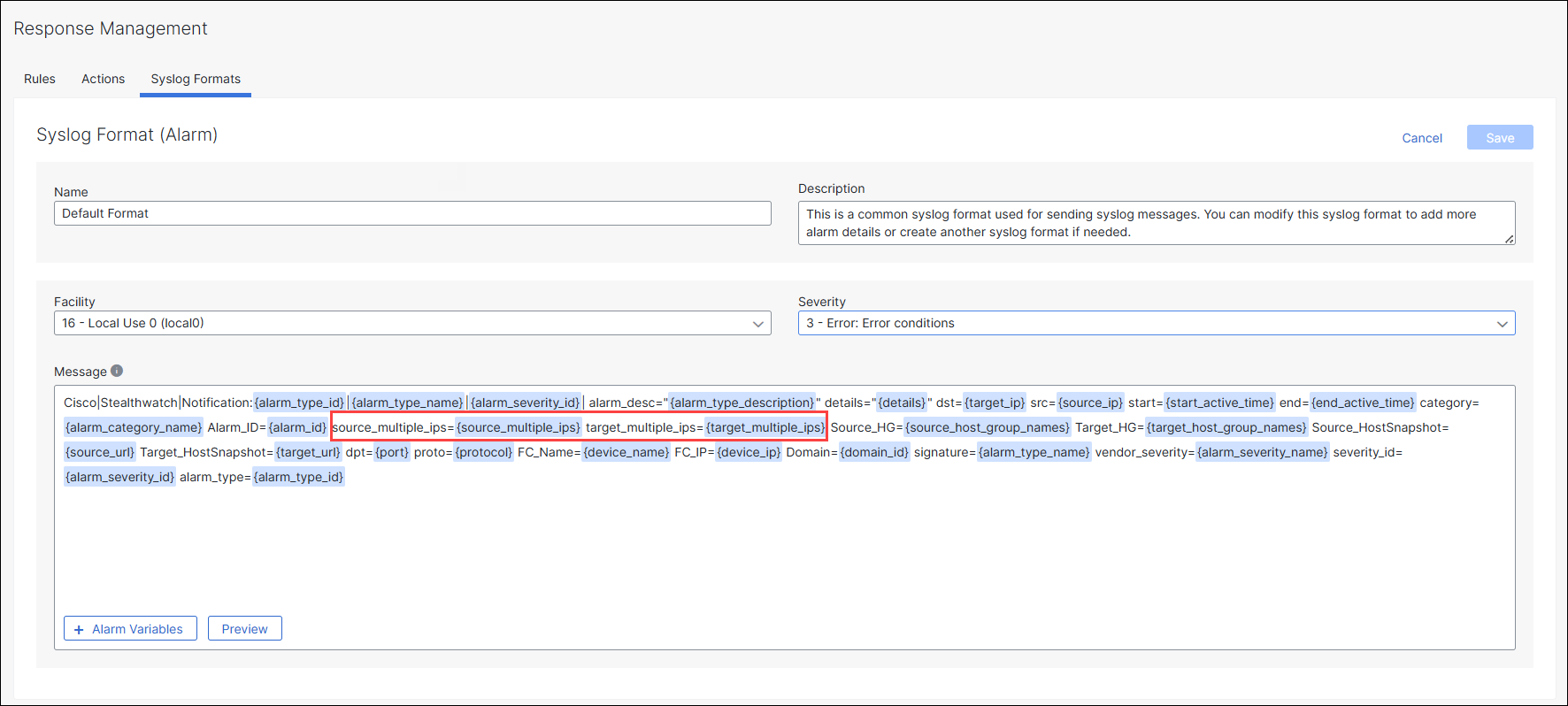 From the main menu, choose Configure > Response Management > Syslog Format.